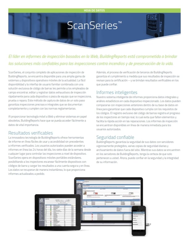 BuildingReports es el nombre más confiable en informes de cumplimiento. Desde el año 2000 somos la plataforma líder para inspecciones de equipos de protección contra incendios y seguridad vital. Nuestro sistema automatiza la generación de reportes, haciendo las inspecciones más eficientes, ahorrando tiempo y dinero. Además, asegura el cumplimiento con NFPA, reduce riesgos y agrega valor a su negocio mediante herramientas que optimizan sus operaciones.