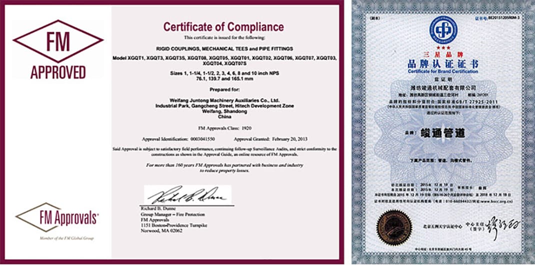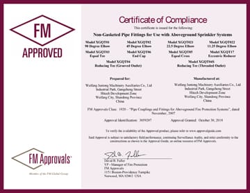 Weifang Juntong Machinery Auxiliaries Co., Ltd. se especializa en la producción de válvulas, accesorios para tuberías con muesca y abrazaderas, así como accesorios roscados, cuenta con múltiples certificaciones como UL, FM y CE, sus productos se exportan a numerosos países y tiene la capacidad de personalizar productos según los requisitos del cliente.
